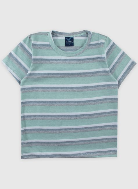 A Camiseta Infantil Avulsa Listrada na cor verde água é perfeita para os meninos que adoram um visual leve, moderno e cheio de estilo! Com listras delicadas e cor suave, essa peça traz frescor e charme para os dias mais quentes.