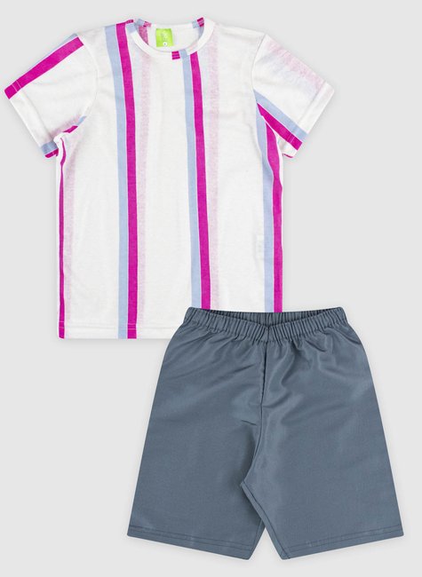 Conjunto Infantil com Camiseta Listrada e Bermuda Lisa
