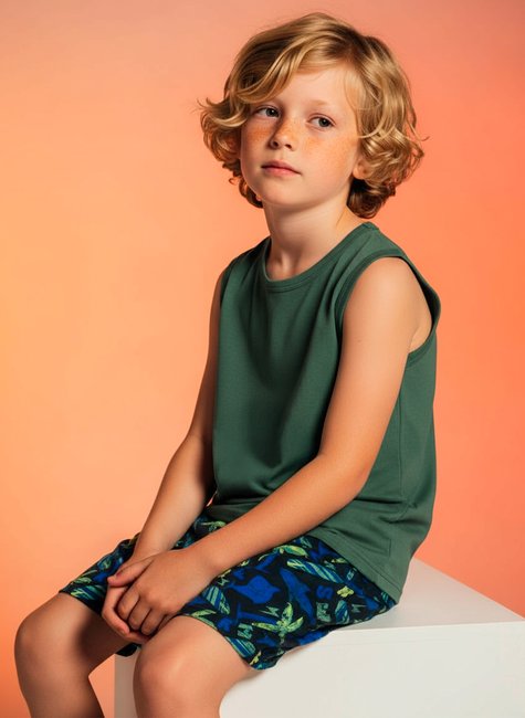 O Conjunto Infantil é perfeito para os dias quentes e cheios de diversão! A regata lisa na cor verde menta traz um visual leve, moderno e fácil de combinar, garantindo conforto e frescor para os meninos aproveitarem cada momento com liberdade.